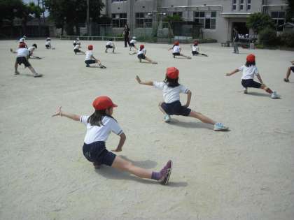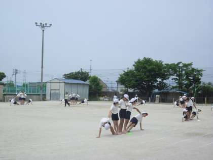 音楽に合わせて、低・中・高学年ともに子ども達が真剣に、そして力一杯練習している姿が職員室からよく見えます。思わずパチリ!とカメラに収めました。