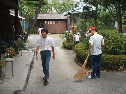 第3回目の清掃活動をしました。今回は作業所でつくってもらった竹箒を使いました。