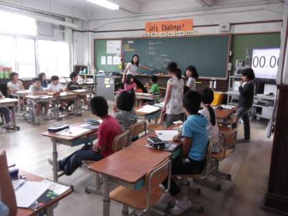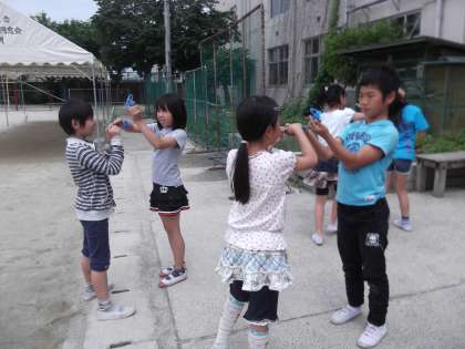 4年生が,理科の「電池のはたらき」で,光電池についての学習をしました。まず始めに,光電池を使ったもので知っていることなどを出し合い,どんな所で使われているかをみんなで確かめました。電卓,時計,家の屋根,国際宇宙ステーション等々,知っていることをいろいろ発表していました。意見が出るたびに,「なるほど。」「それどこにあった?」など,とても楽しそうに話し合っていました。その後,電気を当てたり,外に出て太陽の光を当てたりして,モーターが回るか調べていました。とても活発に実験に取り組んでいました。
