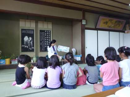 今日のお話は,七夕にちなんで,『たなばたむかし』(七夕がどうしてできたのかというお話)と『おこだでませんように』(「おこらでませんように」と短冊に願いを書いた男の子のお話)でした。子ども達は,どちらのお話にもくいいるようにして聞いていました。次回は秋です。次はどんなお話を読んでいただけるのかとても楽しみです。
