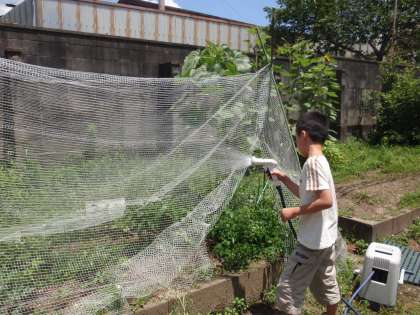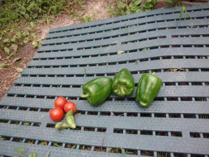 せっかく大きくなってきていたスイカが先日カラスに食べられてしまうという悲しい出来事があったので,しっかりとネットで覆われた畑に次々と夏野菜が実をつけ,今日は小さいけれどとっても甘くておいしいトマトと,どこの八百屋さんに出しても恥ずかしくないほど立派なピーマンが収穫できました。