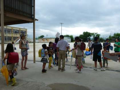 町別児童会をしました。夏休みを前に,安全に登下校できているか,町内で危険な場所はないか,家の周りで遊んでいる時の様子などを確認しました。今回は,地域委員の方々にも来ていただき,夏休みも安全に過ごせるように話し合いました。その後,雨の日の集団下校の仕方も確認し,町内ごとにそろって下校しました。