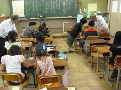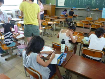 『書き方教室』では,美しい字を書こうと,子ども達はとても真剣に書き写しに取り組んでいました。