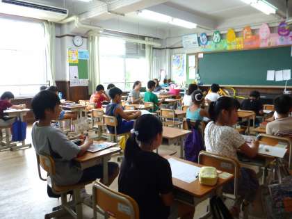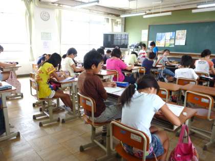 高学年の教室では,ジョイントプログラムのおさらいプリントなどに一生懸命取り組んでいました。時折友だちに聞いたり,辞書で調べたりする姿も見られました。ドリル等がもう終わった子もいました。
