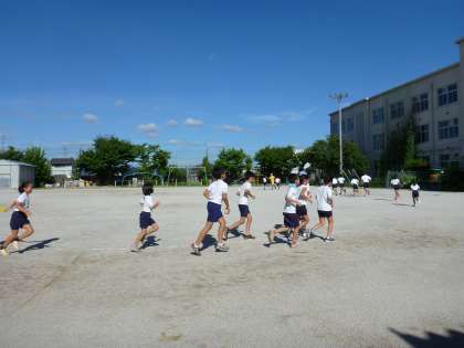 今朝も暑い中でしたが,陸上部の子どもたちは元気に登校し,運動場をランニングしていました。走り終え汗いっぱいの顔は,とても輝いて見えました。