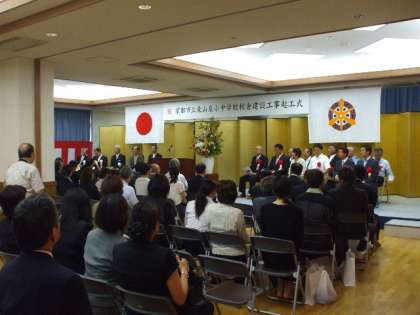 本日,平成26年度開校の東山泉小中学校校舎の起工式が,月輪中学校で行なわれました。市長,教育長はじめ,地域の方,PTAの方など多くの方々のご列席をいただき,盛大に行うことができました。