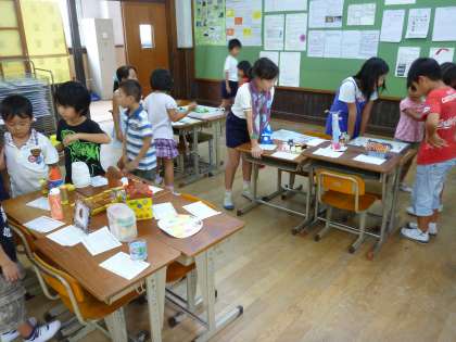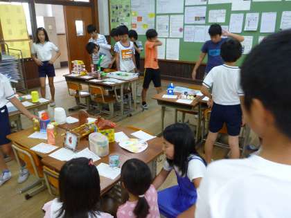 全校の子どもたちは,中間休みに自由に回り,他学年の作品を見て,それぞれ感想を言い合っていました。それぞれの学年の作品を鑑賞することで,「自分も来年はあんな学習に挑戦してみたいな。」「この工作いいなあ。来年は自分も少し工夫して挑戦してみたいな。」と学習意欲を高めて欲しいです。