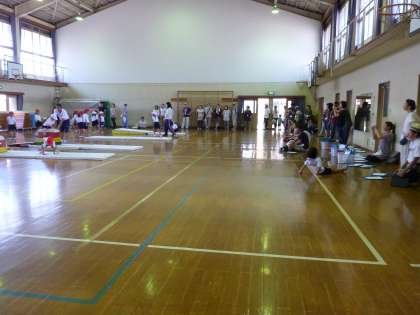 1年生が,体育の「マット・とびばこあそび」をしていました。たくさんの保護者の方々が見ておられる中,子ども達は自分の跳び方や回り方の練習を一生懸命していました。
