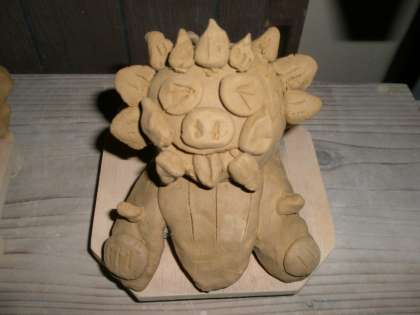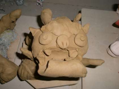 3年生は約1か月かけてシーサー作りをしてきました。個性溢れるシーサーが全員でき上がりました。1か月ほどかけて乾燥させ,素焼きをして絵付けをします。この乾燥させている間に2体目のシーサーに取り掛かります。次のシーサーは,自分の作りたいシーサーのイメージをスケッチに描いてから成型していきます。2体目のシーサーはどんなものになるか楽しみです。