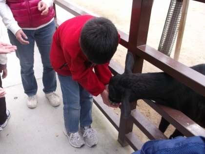 今日は,下京東山支部の合同遠足で動物園に行きました。動物園は改装中で一部見られない所があって,楽しみにしていた「きりん」が見られなくて少し残念でした。でも,おとぎの国「なかよし教室」ではヤギとふれあったり,餌をやったり,ふだんできない体験をすることができました。また,支部のお友だちとも交流できて,楽しい一日になりました。