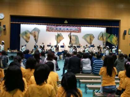 月輪中学校吹奏楽部の演奏や,京都市消防音楽隊や日吉ヶ丘高校との合同演奏など,先輩達のすばらしい演奏を鑑賞し,子ども達にとって,とてもよい学習にもなりました。京都国際中・高等学校の演舞や消防隊のフラッグ演技など素敵な演技も鑑賞できた月中祭でした。