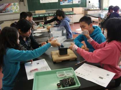 5年生は,プラネタリウムで天体の学習をしました。冬の星座の楽しいお話で子ども達は大盛り上がり,口ぐちに意見を言っていました。その後の展示学習でも,はじめに示された4つの課題に一生懸命取り組んでいました。また,その後は,どの子も進んでセンター内を回り,展示物を動かして実験に取り組んでいました。