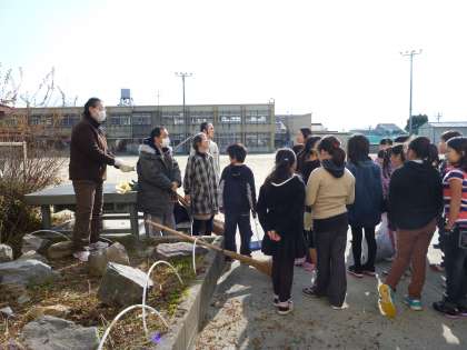 4年生は,PTAとおやじの会主催の「焼き芋と昔遊び大会」のために,昨年の秋から落ち葉を集めていました。しかし,袋の口を閉じていたので,少し腐葉土のようになってしまったので,使えるだろうかと心配していましたが,今日の交流清掃でまた落ち葉をいっぱい集めることができました。「これで焼き芋,大丈夫だね。」と子ども達も嬉しそうでした。「くすの木」共同作業所の方も,「落ち葉があれだけあったのに,子ども達と一緒だったのであっと言う間に綺麗になりましたね。」と話しておられました。そして,子ども達が学習に戻ってからも,「2時頃まで,もう少し掃除してから帰ります。」と,掃除を続けてくださいました。