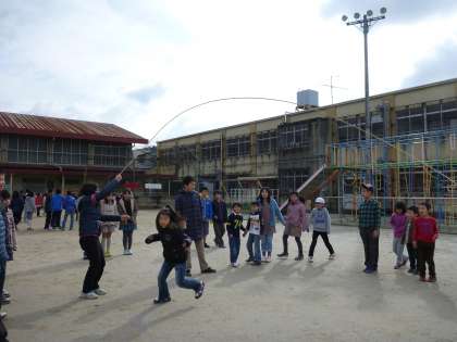 フレンドリーグループによる大縄大会をしました。寒い中でしたが,子ども達は大会を楽しみにしていて,とても元気に大縄跳びをしていました。高学年(4〜6年)の部で5分間に180以上も跳んだグループがありました。低学年の子ども達は,高学年の子ども達が勢い良く跳ぶのを憧れの目で見ていました。最後の感想でも,「お兄ちゃんやお姉ちゃんたちってすごい!!自分も練習してあんなふうに跳べるようになりたい。」との感想が聞かれました。