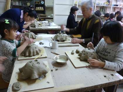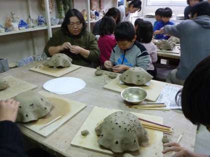 1ヶ月程乾かして,学校の窯で焼きます。今年は色をつけて仕上げる予定です。「早く出来上がってほしいなあ。」という声が聞かれました。出来上がりが楽しみです。