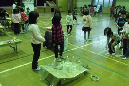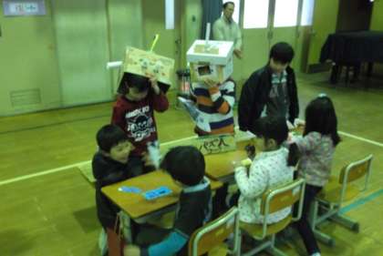 2年生は1年生の時に自分たちが招待してもらったフェスティバルの楽しかった思い出を胸に,冬休み前からフェスティバルの準備をしてきました。手作り楽器,ボーリング,ゴルフ,ストラックアウト,輪投げ,まちがい探しなど8つのコーナーを用意し,1年生を迎えました。