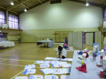 本日は中間休みに,5年生が展示用の卓球台を出し跳び箱などを片づけてくれました。テキパキとよく動いて,思ったよりも早く準備ができました。5・6時間目には,各学年が立体作品を展示し,明日の開催の準備が着々と整ってきました。