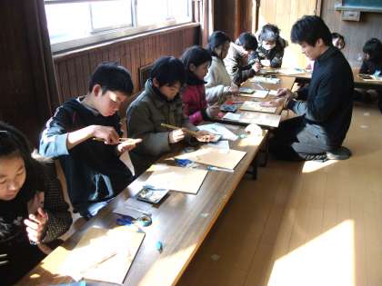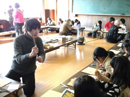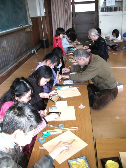 5年生が,伝統工芸士の職人さんに来ていただいて金箔押体験学習をしました。