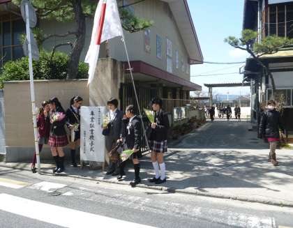 校舎を出た後も,しばらく本館の周りや校門の所に集まって,記念撮影をしたり語りあったりして小学校との別れを惜しんでいるようでした。