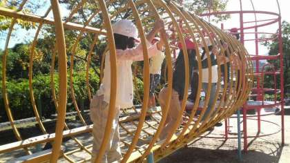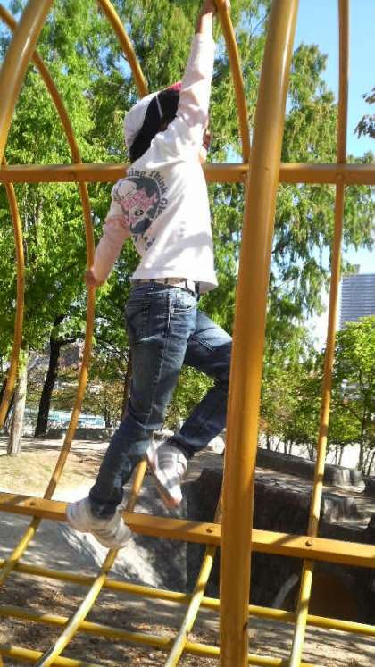 公園に着いて,休憩もそこそこに,すぐにアスレチックで元気に遊ぶ子どもたち。