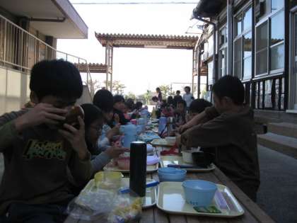 子どもたちは,「家で炊飯器で炊いたご飯と違い,かまどで炊いたご飯の方がおいしい。」「かまどでの火おこしは去年みさきの家でも経験した。熱くて顔が真っ赤になったけど,おもしろかった。」「みんなでいっしょに外で食べたのがおいしかった。」・・・と,大変満足そうでした。