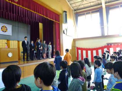平成25年度,着任式と始業式を行いました。5名の教職員を迎え,心新たなスタートです。子どもたちも,とても姿勢よく静かに式を迎えることができ,『1年進級した,自分たちは大きくなったのだ』という思いがひしひしと伝わってきました。