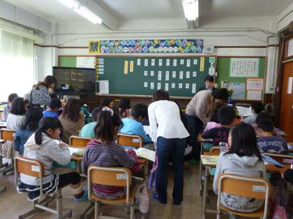 4月19日(金)平成25年度初めての参観・懇談会をもちました。少し風がきつく肌寒い日でしたがよいお天気に恵まれ,たくさんの保護者祖父母の方々に来校いただきました。どの教室も多くの参観者でいっぱいで,子どもたちは少し緊張気味でしたが,進級してからのがんばりを活かし,各々の学習に一生懸命学習取組む姿が見られました。