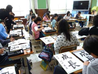 5年生が習字をしていました。「とめ・はね・はらい」に気を付けとても丁寧に字を書いていました。静寂の中,集中して取り組んでいる様子に,5年生に進級した成長を感じました。