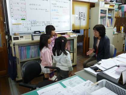 1年生が,生活科の学習で学校たんけんをしました。先日2年生に案内してもらって,子ども達の間にもう一度行きたいという思いが高まり,今回は自分たちだけでたんけんすることになりました。それぞれの部屋にしっかりあいさつをして入り,名前や仕事などを一生懸命質問していました。