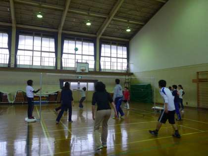 各学年対抗試合で大盛り上がり,子ども達も大声で声援していました。ソフトバレーボールなので少し飛び方が違い戸惑っているチームもありましたが,とてもよい汗を流すことができました。各学年の保護者間の交流が深められました。