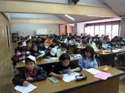 遊びたくて仕方なかったスリル満点の「冒険の森アスレチック」で遊びました。生活や観察学習中心の日々でしたが,やっと思いが適い思う存分キャッキャ言いながら遊びました。その後,5日間の日々を振り返り,班毎に,そして全体で思いや考えの交流を進めています。予定通り11:30より昼食を頂き,知り合った仲間やお世話になった山の家の人々とのお別れの式をした後,13:00に山の家を出発します。