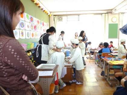 その後,1年生が給食の配膳をするところを参観し,そして,ランチルームで給食を食べました。本日のメニューは「カレー肉じゃが・ヒジキ煮」で,子ども達の好きなメニューの1つです。子ども達はご飯も残さず食べていました。保護者の方から,「給食とても美味しかったです。」「1年生でもしっかり自分たちで配膳していますね。」「子ども達がご飯つぶも残さず上手に食べいるので感心しました。」「家でも手伝ってもらわなくては。」などの感想が聞かれました。