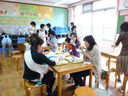 P TAの保健体育委員さんが中心になって,1年生の保護者を対象に給食試食会を行いました。