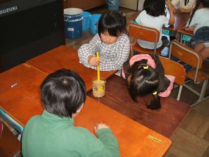 「わーしずんでくる。」「これが強いたねもみなんやな。」