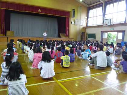 もうすぐ水泳学習が始まります。安全に気を付け,自分の目標に向かって泳力の向上を目指しましょう。「今熊野のやくそく」は,実践することが大切です。卑怯な振る舞い(落書やいじめ)はしないことです。また,年上の方を敬い,ありがとうが言える素敵な心を大切にしましょう。靴箱の靴も綺麗に並んでいて気持ちがいいです。みんなの心が1つになっているのが分かります。これからも続けて揃えていきましょう。また,授業中だけでなく,休み時間などでも「さんづけ」で友だちを呼び,友だちを大切にしましょう。実際にできるように心にとめておきましょう。などの話が学校長からありました。