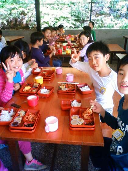 昼食は,深谷水道横の炊事場で食べました。少し蒸し暑くなってきましたが,子ども達は元気です。