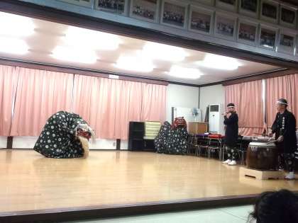 最後に,「獅子によって色や形が違うのはどうしてか。」「いつ頃から獅子舞があるのか。」「どんな気持ちで獅子舞をしてられるのか。」「自分たちも獅子舞ができるか。」など質問していました。子ども達の質問に獅子組の方々は一つ一つとても丁寧に答えてくださいました。そして,「みんなが自分たちの後を受け継いでくれるために,今日来たんだよ。」と,伝統を受け継いでほしいという思いを話されました。
