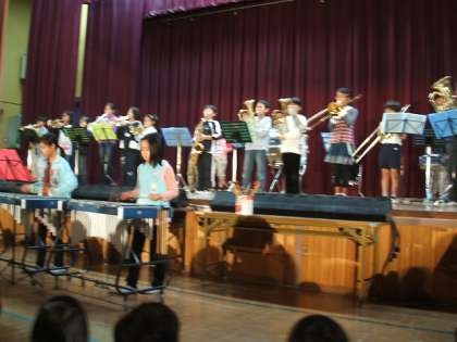 午前中最後の舞台は,鼓笛バンドクラブのお礼のコンサートです。