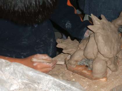 3年生はシーサー2号に取り掛かっています。今回は,色を付けます。
