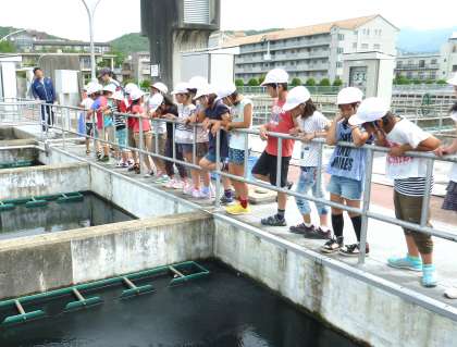 4年生が社会科の学習で,松ヶ崎浄水場に見学に行きました。
