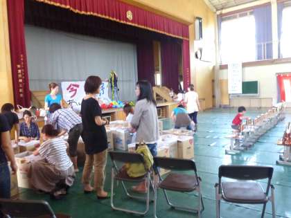 PTAの役員方を始め,地域の多くの方が朝早くから,明日6月30日(日)の『今熊野感謝祭』に向けて,前日準備をされています。イベントの一つ「ふわふわ」の試行も行われ,一緒に来た子ども達の楽しい声も聞こえてきました。明日の開催に向け着々と準備が進んでいます。