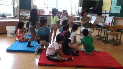 読書力の向上を図る目的で,本年度も「教師による読み聞かせ会」を行います。1・3・4年生はクラスを半分ずつに分けて,少人数でお話を聞きます。読書ボランティアによる朝の読み聞かせで,お話大好きな今熊野の子ども達は,どの先生がどんな本を読んでくれるか「教師による読み聞かせ会」もとても楽しみにしてくれています。