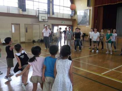 まず始めに,体育館で大人対子どもでドッチボールをしました。大人の方が投げたボールを,「大人の人はすごいなあ。」「あんなボールが投げられるようになりたいなあ。」と,子ども達は憧れのまなざしで見ていました。