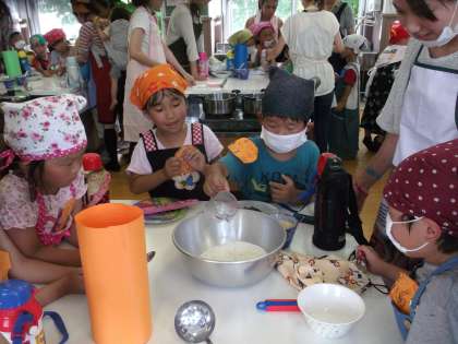 その後,家庭科室で白玉団子作りをしました。保護者の方が,全て自分の子どものように接してくださって,和気あいあいとした雰囲気の中でお団子作りができ,みんなで美味しくいただきました。