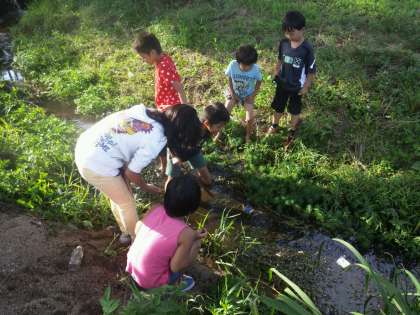 7月20日21日,今熊野支部少年補導主催のサマーキャンプがありました。両日ともとてもよいお天気に恵まれ,琵琶湖で泳いだり,水際の生き物探しをしたりと,子ども達は大はしゃぎでした。夕食は少補の方々が作ってくださった焼きそばなどを,子どもたちはお腹いっぱい食べていました。