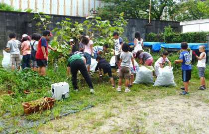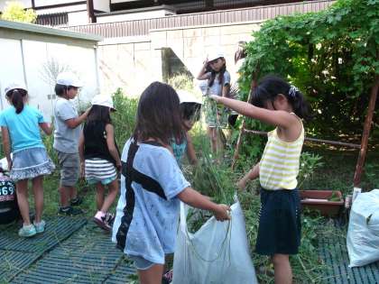 そして,夏の間に伸びた学級園の草抜きをしました。草だらけだった学級園が随分すっきりしました。