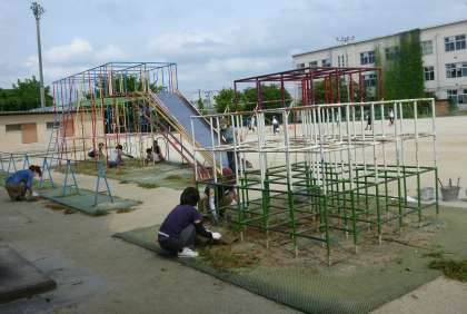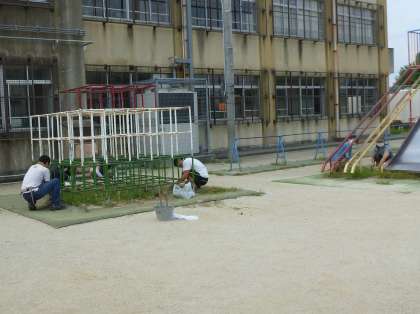 クリーンアップでは,暑い中運動場でも,遊具の下の草抜きをしてくださいました。草がマットに絡んでなかなかぬけなくて大変でしたが,汗だくになりながらも一生懸命抜いてくださいました。