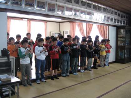 リコーダーの演奏ともみじなど四季の歌を,手遊びを入れながら合唱しました。