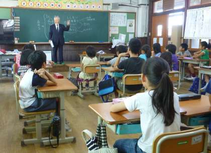 4年生が,社会科「事故や事件を防ぐ」の学習で,今熊野地域の安全を守る取組について,毎朝子ども達の登校を見守ってくださっている学校運営協議会の会長さんから,お話を聞かせていただきました。
