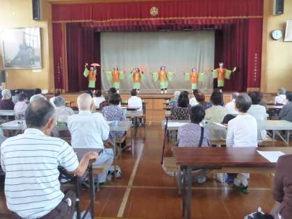 9月22日(日),社会福祉協議会主催で,敬老会の昼食茶話会が体育館でありました。花柳白梅社中による民謡と踊りや健康体操,大正琴の演奏などの出し物があり,多くのお年寄りの方々が楽しんでおられました。